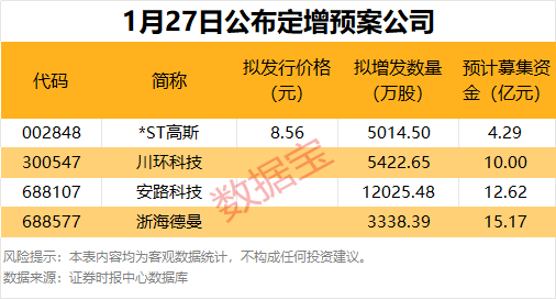 1月27日共有4家公司公布非公开刊行预案。
