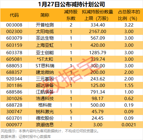 当天共16家公司公告推动减捏打算开云体育,拟减捏比例居前的有开普检测、太阳电缆、圣达生物等。