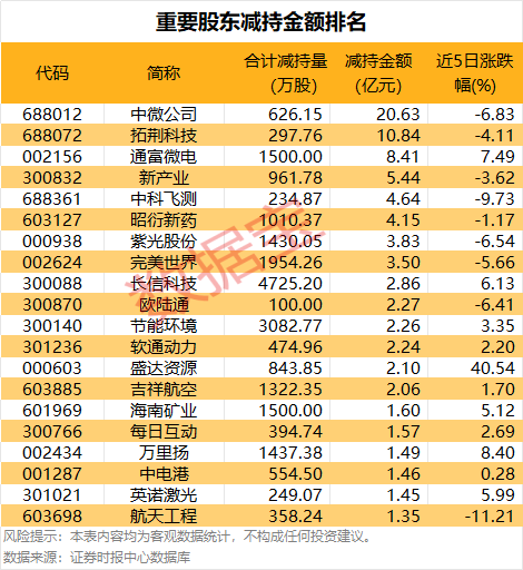 从金额看,减捏金额在1亿元以上的有30家,减捏金额最多的是中微公司,其间累计减捏626.15万股,减捏金额所有20.63亿元;其次是拓荆科技,减捏量为297.76万股,减捏金额10.84亿元;通富微电近5日遭推动减捏8.41亿元,位居推动减捏榜第三位。