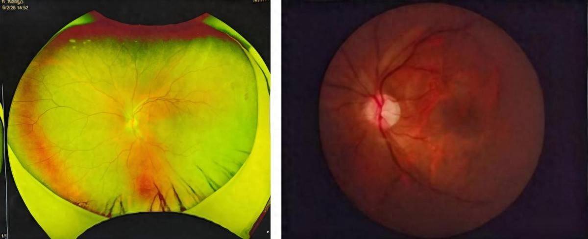 患者住院时病情极为危险,左眼视物变形且婉曲,视网膜脱离界限已累及黄斑区,若延误颐养,将濒临长期性失明风险。南华病院眼科团队鸠合多维度眼底探查,反复比对影像数据,最终精确锁定隐退性视网膜裂孔,确诊为复杂性孔源性视网膜脱离,为手术制定了科学决议。