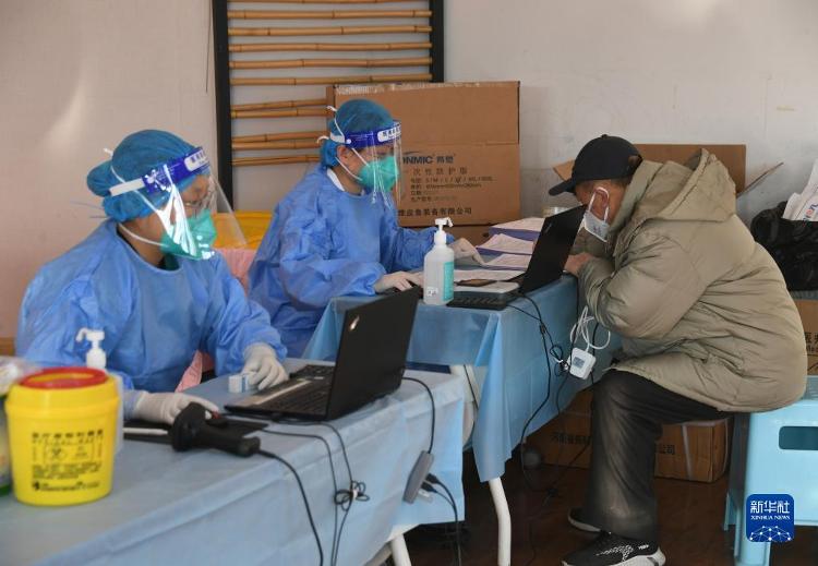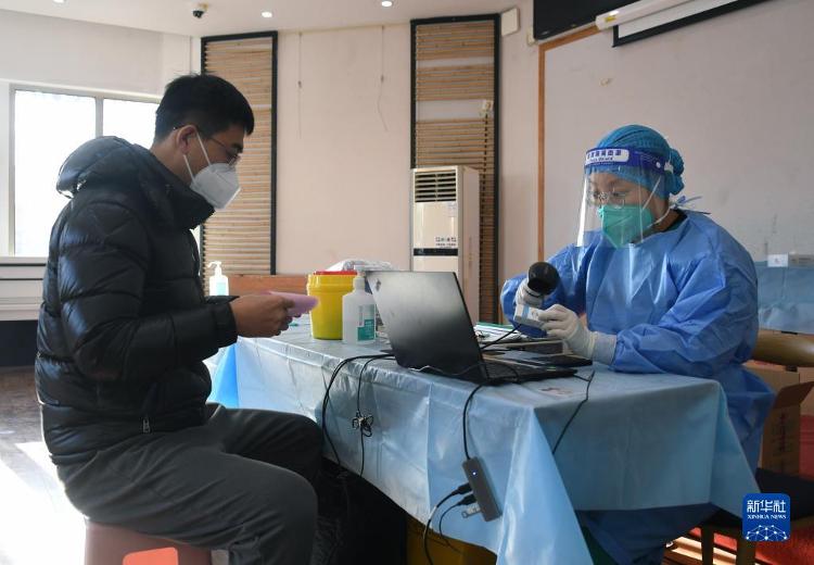 12月17日,在北京市海淀区田村路街谈新冠疫苗临时接种点,医护东谈主员为市民登记信息。