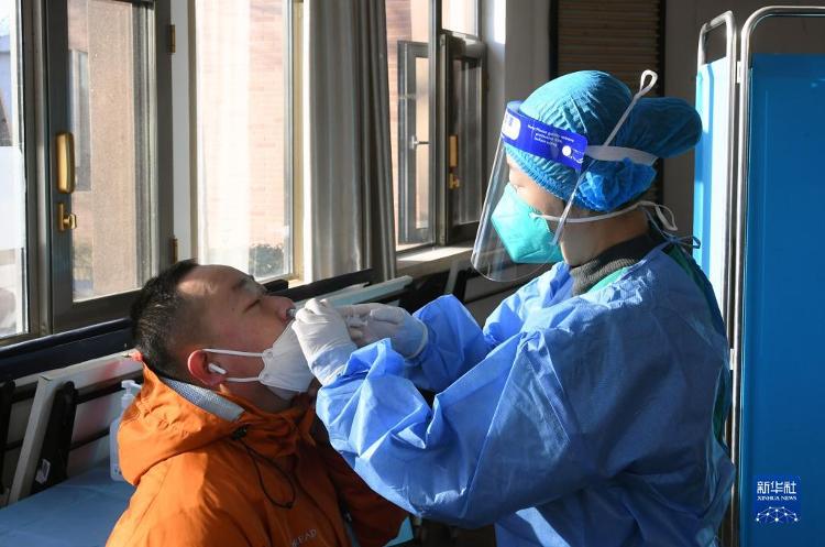 12月17日,在北京市海淀区田村路街谈新冠疫苗临时接种点,医护东谈主员为市民接种鼻喷第二剂次加强针。
