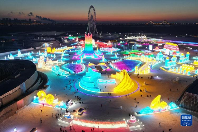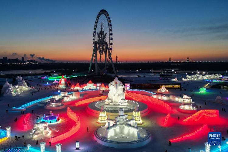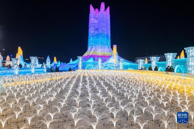 这是12月17日在哈尔滨冰雪大宇宙园区内拍摄的景不雅。当日,第24届哈尔滨冰雪大宇宙迎来试开园。新华社记者 王松 摄