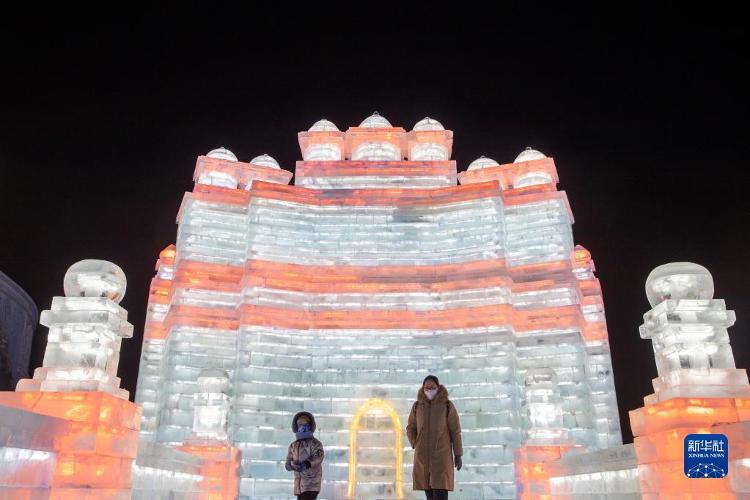 12月17日,旅客在哈尔滨冰雪大宇宙园区游览。当日,第24届哈尔滨冰雪大宇宙迎来试开园。新华社记者 王松 摄
