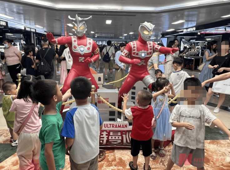 小孩们在奥特曼雕刻前围不雅 图片开头:每经记者 王帆 摄