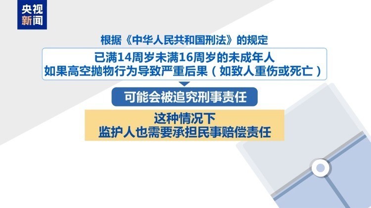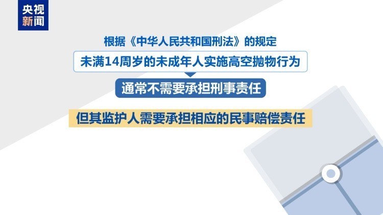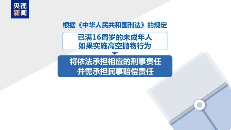 已满16周岁的未成年东谈主,如果履行高空抛物当作,将照章承担相应的处分,并需承担民事补偿背负。(总台央视记者 朱云 黄一宸)起首: 央视新闻客户端